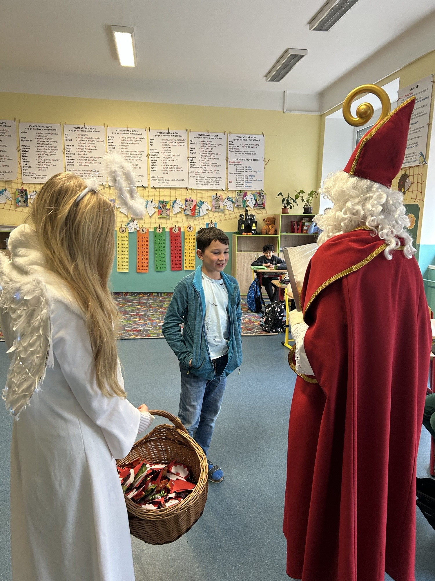Mikuláš, čert a anděl na naší škole.