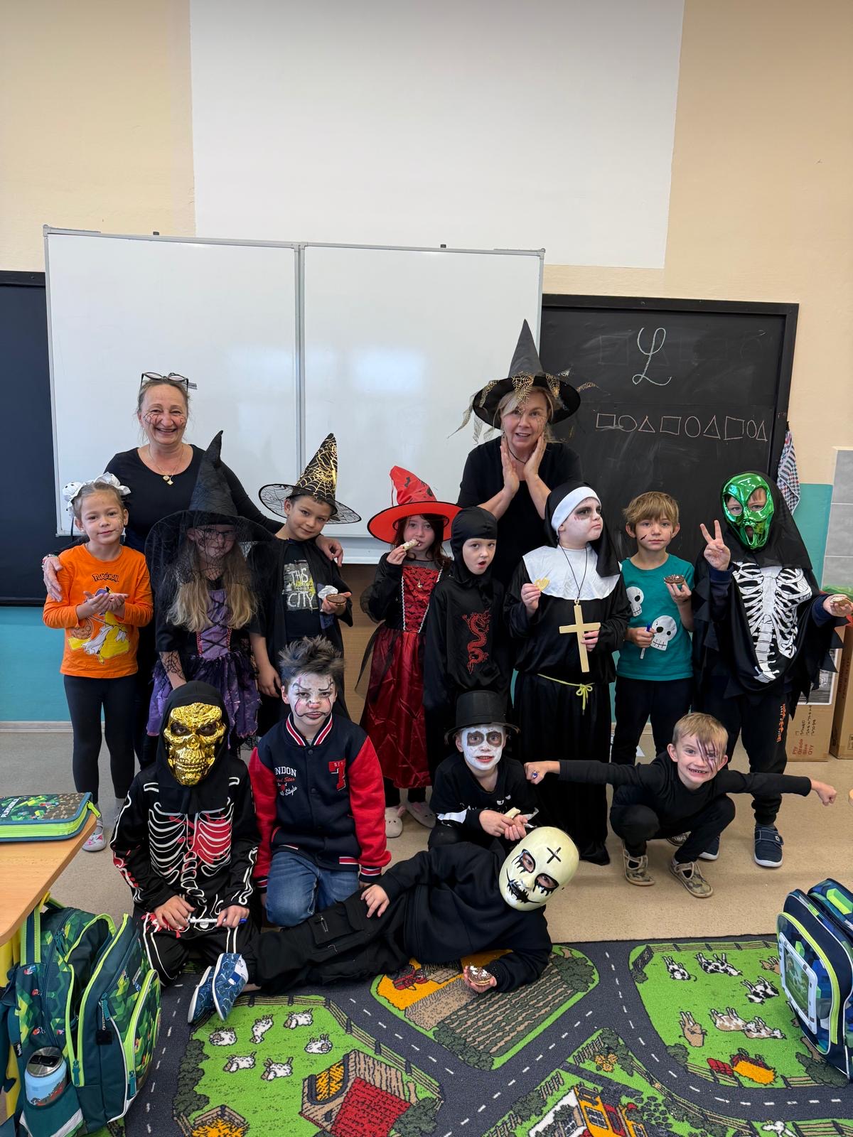 V pátek 7. 11. se naše škola proměnila ve strašidelný hrad, ve kterém žije spousta strašidel. Pro všechny strašidla, mumie, upíry, čaroděje, zombie a duchy byla připravena sladká odměna v podobě strašidelných sušenek.